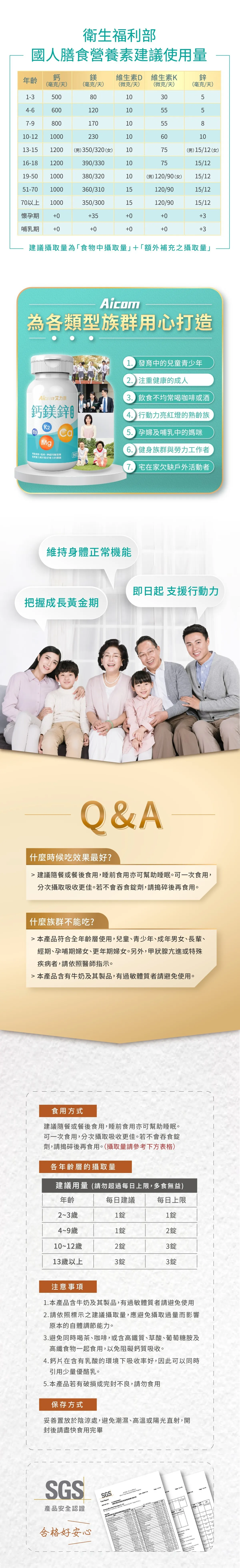 Aicom艾力康 - 鈣鎂鋅加強錠 |