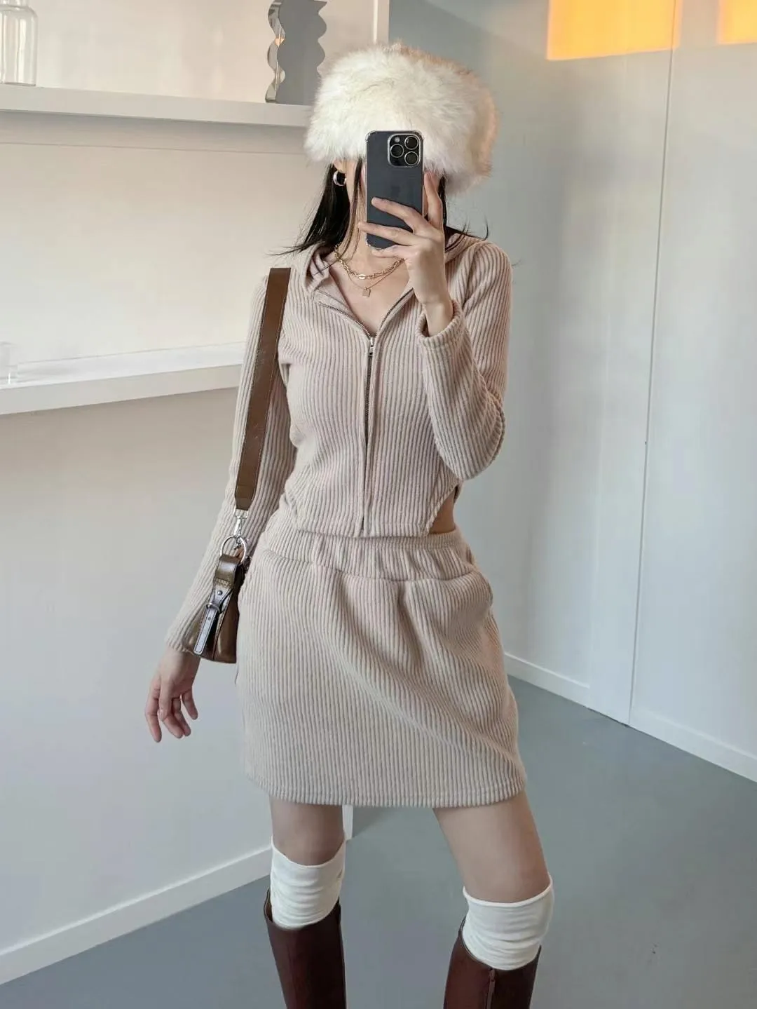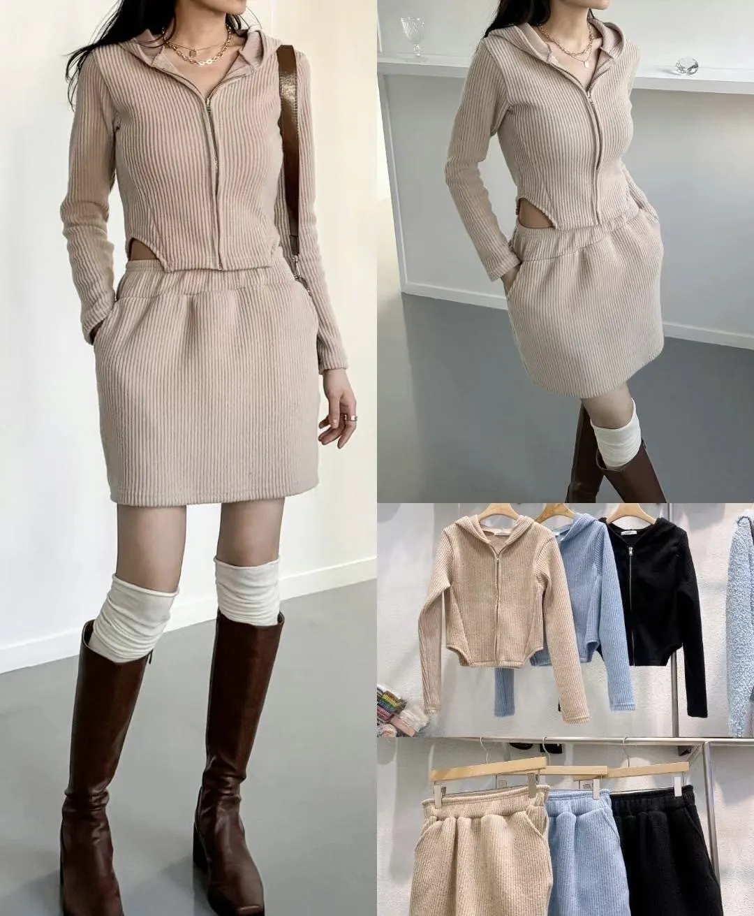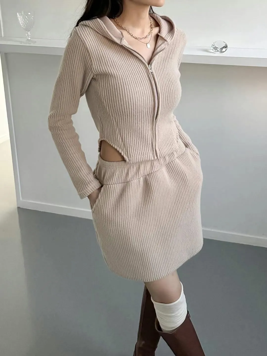 正韓連帽外套+裙套裝